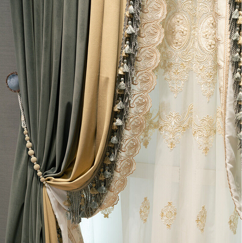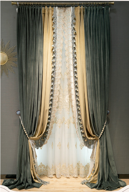 American Dark green luxury velvet thick cloth blackout curtain tulle drape C1408