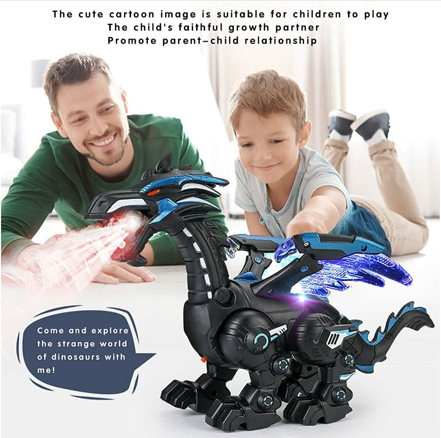 2. 【Interactive Dinosaur Toy】: Growls Walking dinosaur has Technology Machinery Dinosaur appearance. Dinosaur has stunning, dazzling lights that illuminates. It could move, flame spraying, realistic roaring Suitable for family entertainment, but also the children's loyal growth partner.