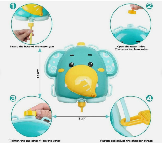 Kids Water Gun Backpack Pistol Summer Beach Toy Gift Backpack Water Gun