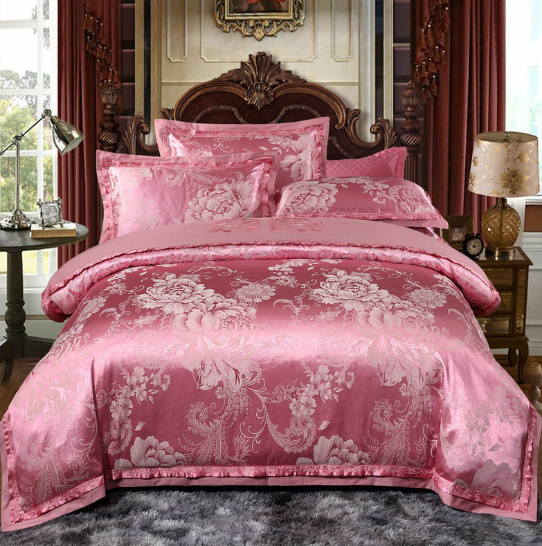 Luxury Silk Satin Bedding Sets Queen King Size Cotton Bed Bedlinen Linge