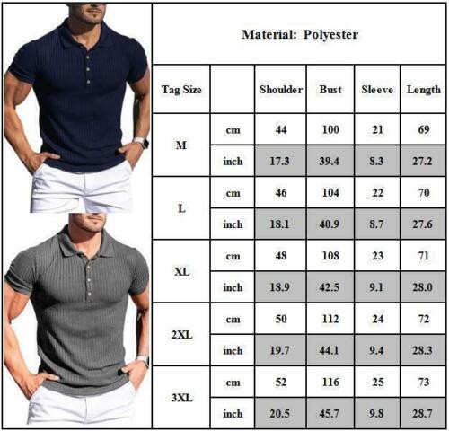 Men Short Sleeve Ribbed Muscle Polo Shirt Casual Slim Fit Stretch T-Shirt Top