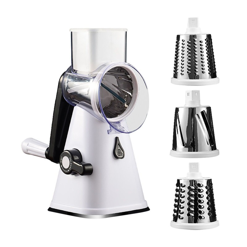 • Equipped with three interchangeable cylindrical or rollers. Each one serves a different purpose like chopping, slicing, etc. It's available in three colors, red, green and blue, so you can it to your taste.