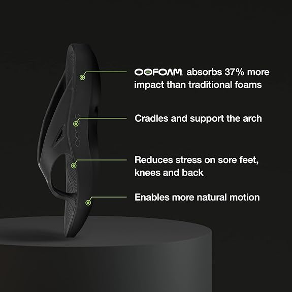 OOfoam Technology - Our revolutionary OOfoam technology absorbs 37% more impact than traditional footwear foam materials to reduce the stress on your feet, joints & back. Plus, the closed-cell foam is machine washable and designed to minimize odor.