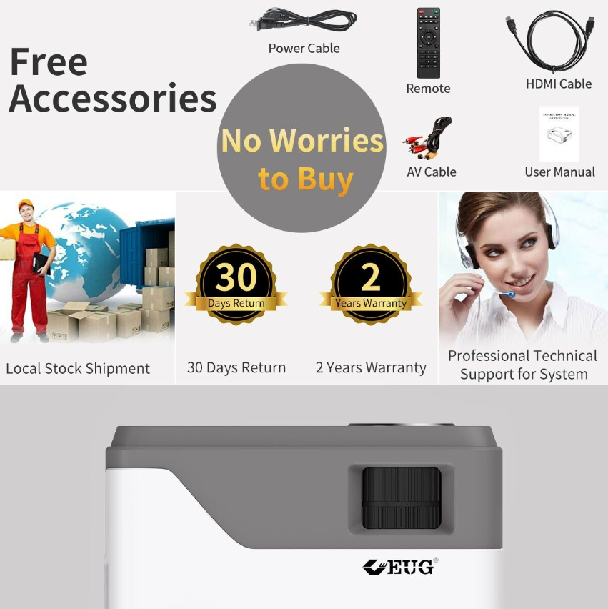 After receiving the projector, if you are satisfied with the projector, please help to leave us with an all 5 star positive feedback, then contact us for the free gift. Thanks.