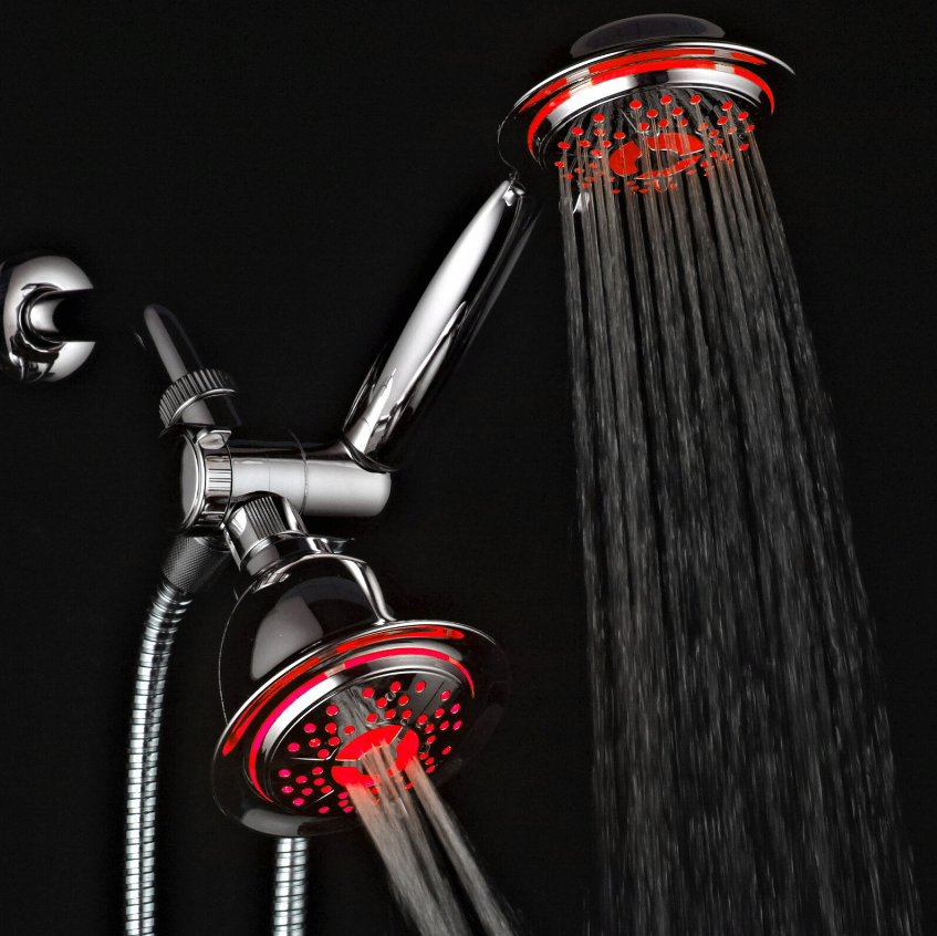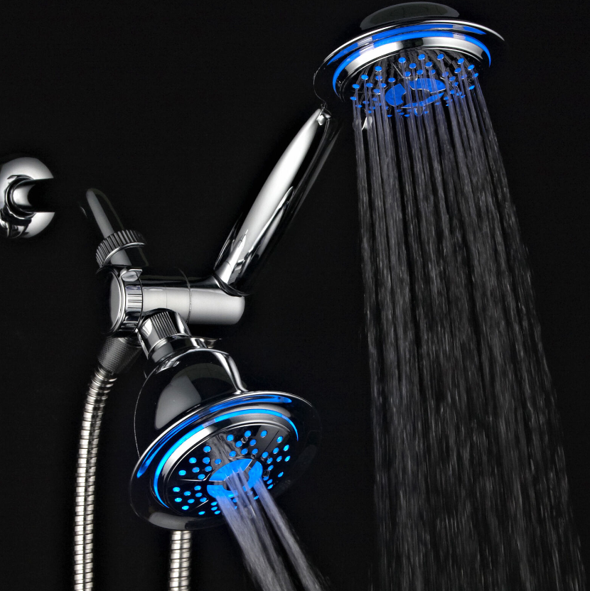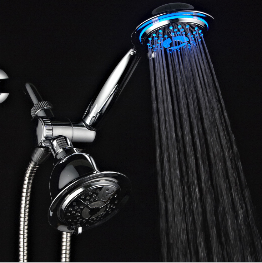 • Both shower heads feature Hydro Supercharged Turbine LED, Air Jet design that maximizes your water pressure output performance by injecting oxygen into water flow through 48 elastic rub-clean nozzles that help prevent clogging