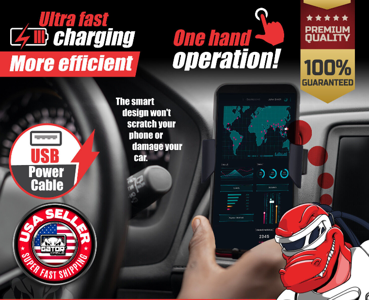 Durable ABS, Auto Clip On, Qi Wireless Technology, Air Conditional Vent Mount, Clip On, Universal Use for Wireless Charging Phones, Non Slip, Fast Charge, Heavy Duty, Holder, Wireless Charging