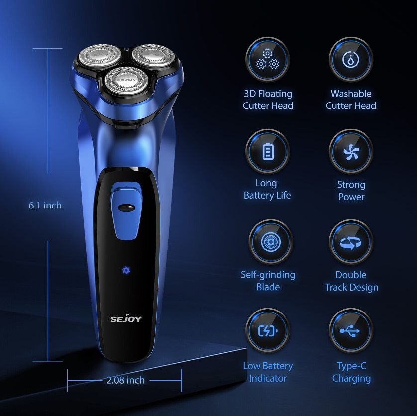 • Features :3D Floating Cutter Head,Washable Cutter Head,Self-grinding Blade,Double Track Design,Long Battery Life,Strong Power,Low Battery Indicator,Type-C Charging