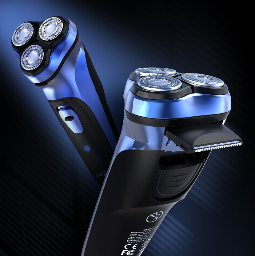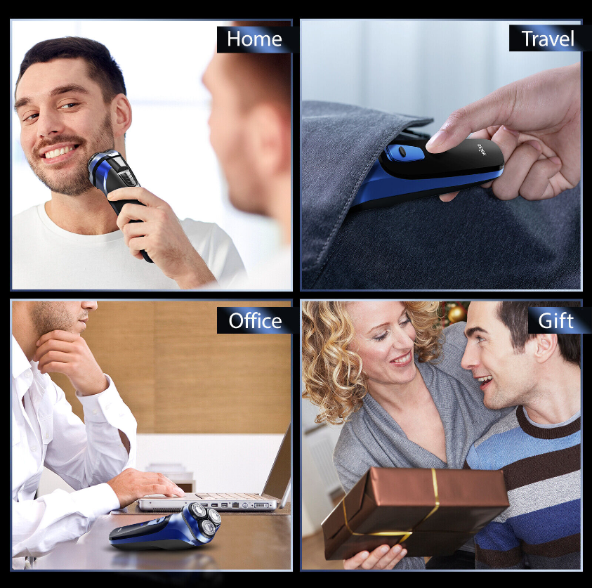 【3D Floating Shaving Head】-This electric razors for men is equipped with three 3D floating shaving heads which can perfectly follows the contours of your face, the neck and jaw line.It reduces skin friction and ensure smooth and gentle shaving.