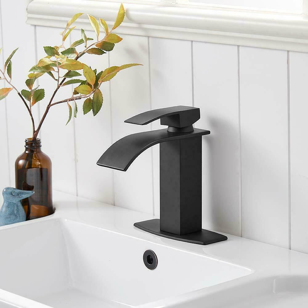 Waterfall Bathroom Sink Faucet Single Handle Hole Vanity Mixer Taps with Cover