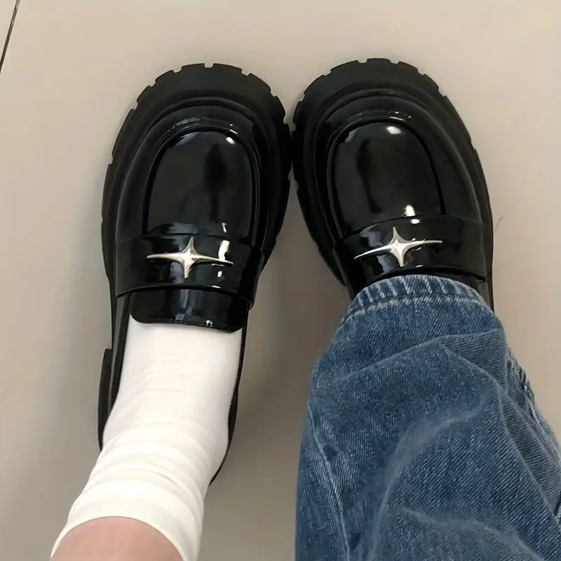 Women's Platform Loafers, Star Decor Round Toe Faux Leather Shoes, Casual All-Match Loafers